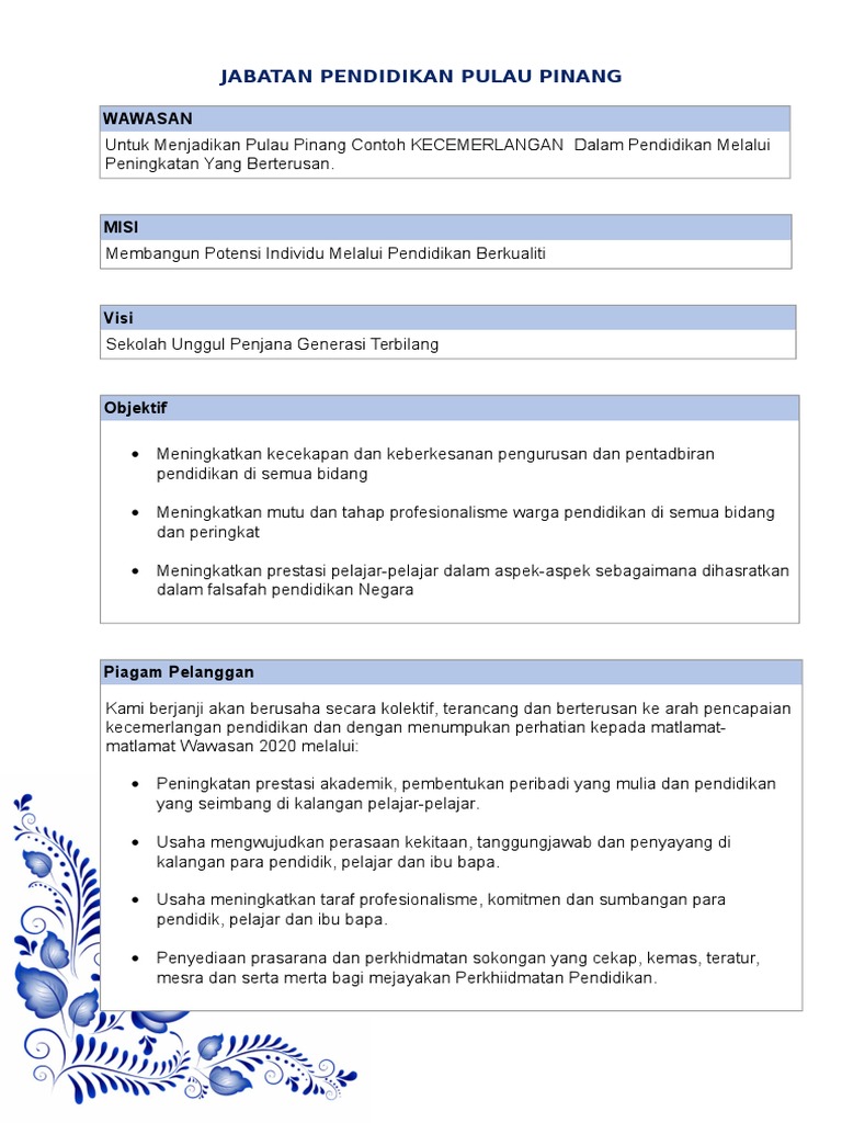 Visi Misi Jabatan Pendidikan Pulau Pinang Pdf